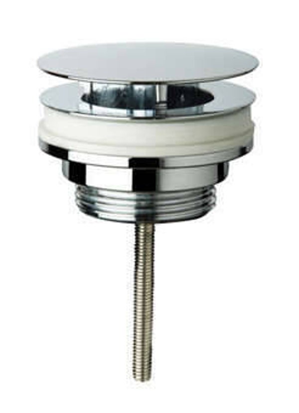 Standaard afvoerplug met push-open – eenvoudig open en dicht te drukken, geschikt voor wastafels met overloop.