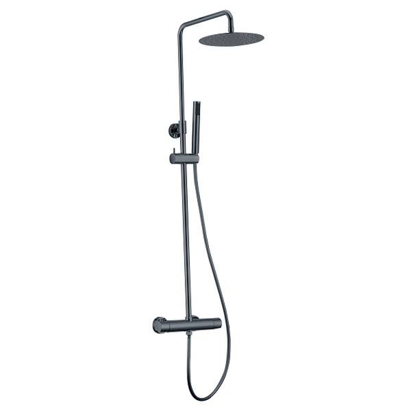 De Laura regendoucheset is een complete luxe set met thermostatische douchekraan, hoofddouche, handdouche, doucheslang en verstelbare douchestang. Dankzij de PVD-coating is de afwerking extra kras- en kleurvast. De verstelbare hoogte (87,8 tot 132,7cm) maakt de set geschikt voor ieder huishouden.