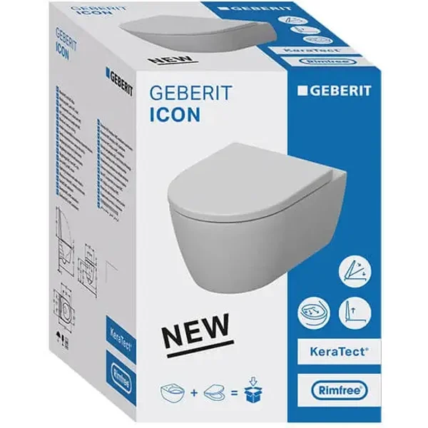 Het Geberit iCon WC-pack is een modern wandcloset met een strak design en hoogwaardige afwerking. Dankzij de Rimfree® spoeltechniek zonder spoelrand wordt vuilophoping voorkomen en blijft het toilet eenvoudiger schoon.