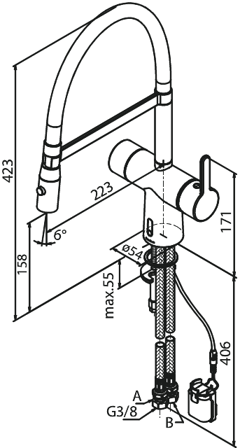 Maximale montagehoogte: 423 mm