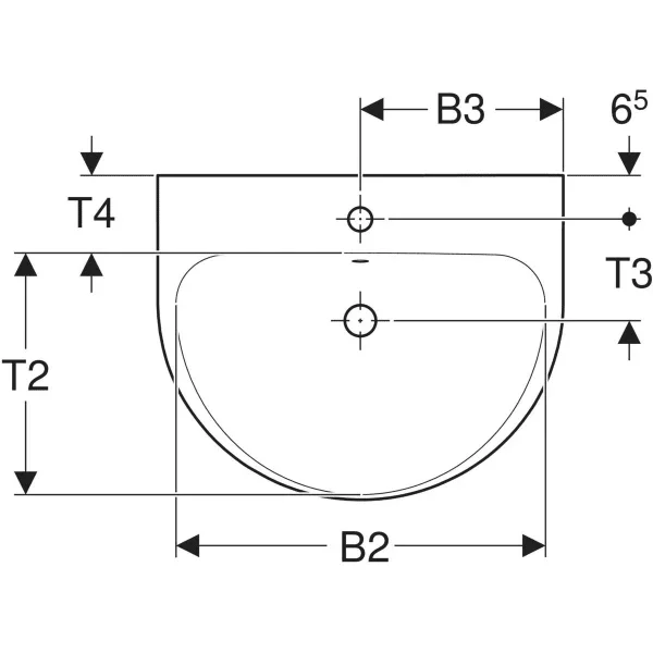 Geberit - Renova Wastafel 60 cm wit met kraangat met overloop